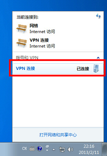 通过使用 VPN 连接设置启动一个 VPN 连接,点击 Windows 右下角的网络图标。VPN 设置将在屏幕上列出。单击您要使用的 VPN 设置。如果 VPN 连接被建立起来, "已连接" 的状态将被显示。